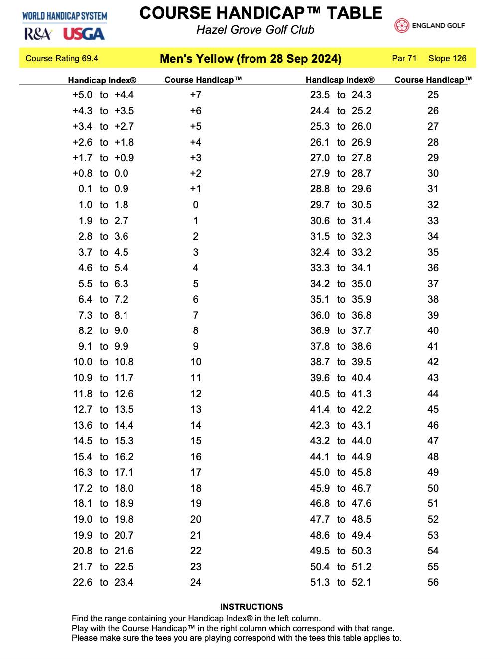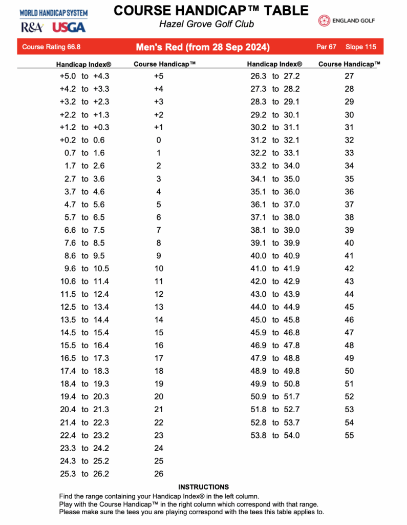 MENS HANDICAP TABLES