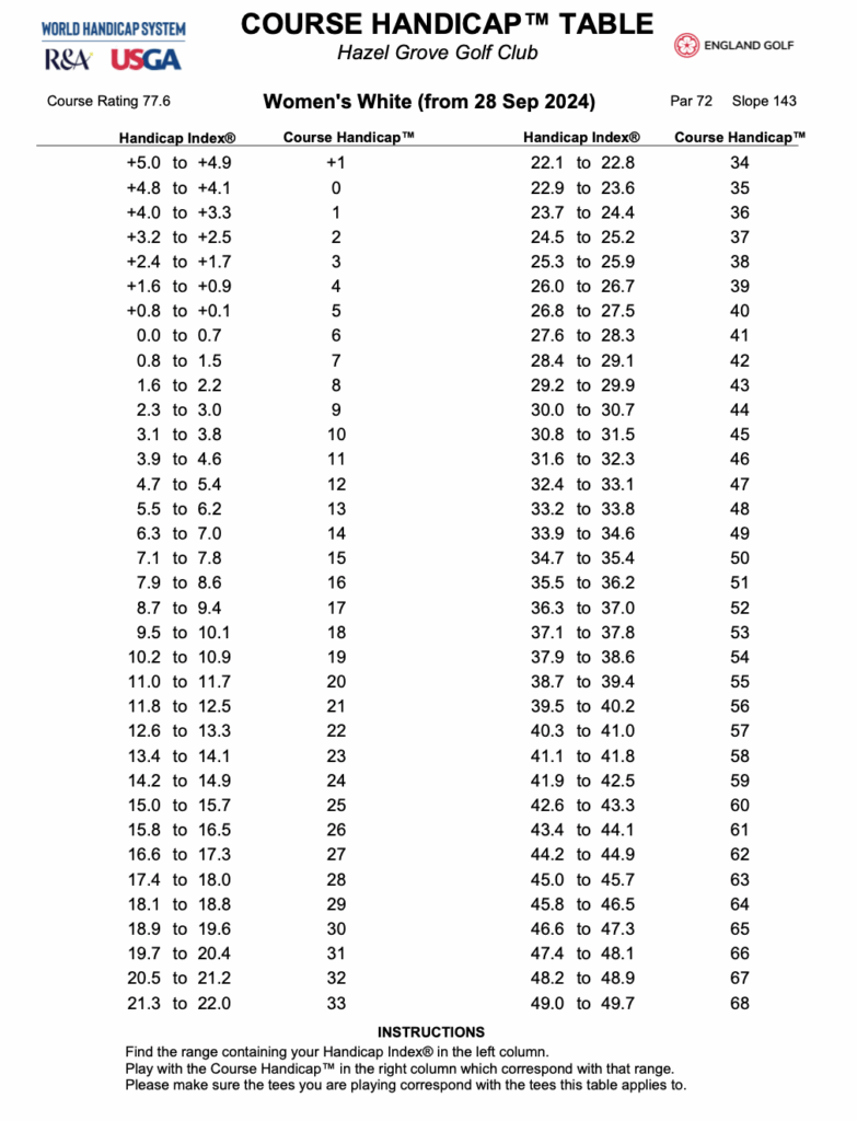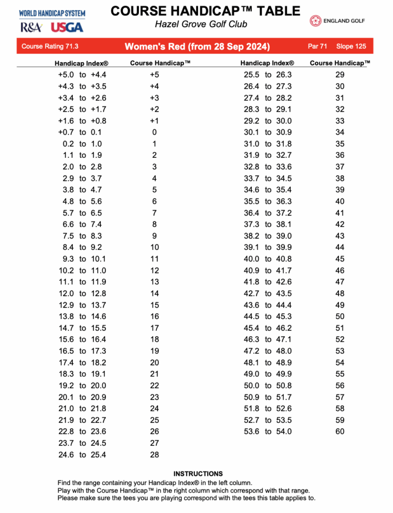 WOMENS HANDICAP TABLES